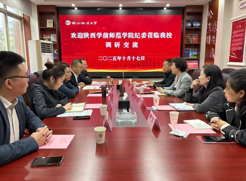 10月17日,校党委副书记、纪委书记、监察专员赵琼带领全体专职纪检监察干部赴西北政法大学开展纪检监察工作调研学习。西北政法大学党委副书记、纪委书记、监察专员刘志彬,以及纪检监察机构相关同志出席调研座谈会。